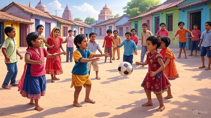 गाँव का बचपन खेलों से रंगा हुआ था। गिल्ली-डंडा, कंचे, कबड्डी, रस्सी कूद, लुका-छिपी, चोर-सिपाही—हर खेल में दोस्ती और भाईचारा झलकता। जीत-हार पर झगड़ा तो होता, लेकिन वह नाराज़गी अगले ही पल हँसी में बदल जाती। जब बच्चे खेलते तो पूरा गाँव मानो उनके साथ जुड़ जाता। कोई पेड़ की छाँव से देखता, कोई तालियाँ बजाता, तो कोई बच्चों को उत्साह बढ़ाने वाले शब्द कहता।